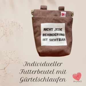 Es sind andere Farben, Schlaufen für Karabiner oder Gürtel möglich. Genau wie individuelle Logos, Bilder, Sprüche. Seid kreativ – ich setze alles, was möglich ist, sehr gerne für euch um.